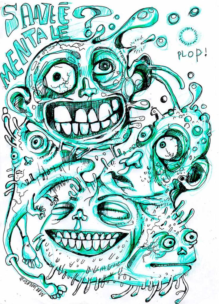 Retour à la réalité blanche et froide de l’HP. Univers carcéral avec une blouse blanche. L’hôpital qui panse, aplani, reformate et renvoie à la guerre, « car c’est ainsi que va la vie, par vagues d’assaut qui se succèdent comme la marée au jour J. La Normandie et puis… retour sur les plages du Prado. Calme blanc, cachets blancs, encéphalogramme plat. Jusqu’au prochain assaut… » C’est comme ça qu’il le voit après chaque redescente. « Toujours la même séquence ». Le bad bit, et puis… il arrête sa prescri, et puis… ça recommence comme en 14-18. « 2014-2018, la première troisième guerre mondiale ? » En tous cas dans sa tête oui, presque un internement par an. « 2019-2020, les années folles très certainement ». Et la cadence s’accélère. La guerre ne sera jamais fini.
