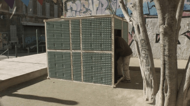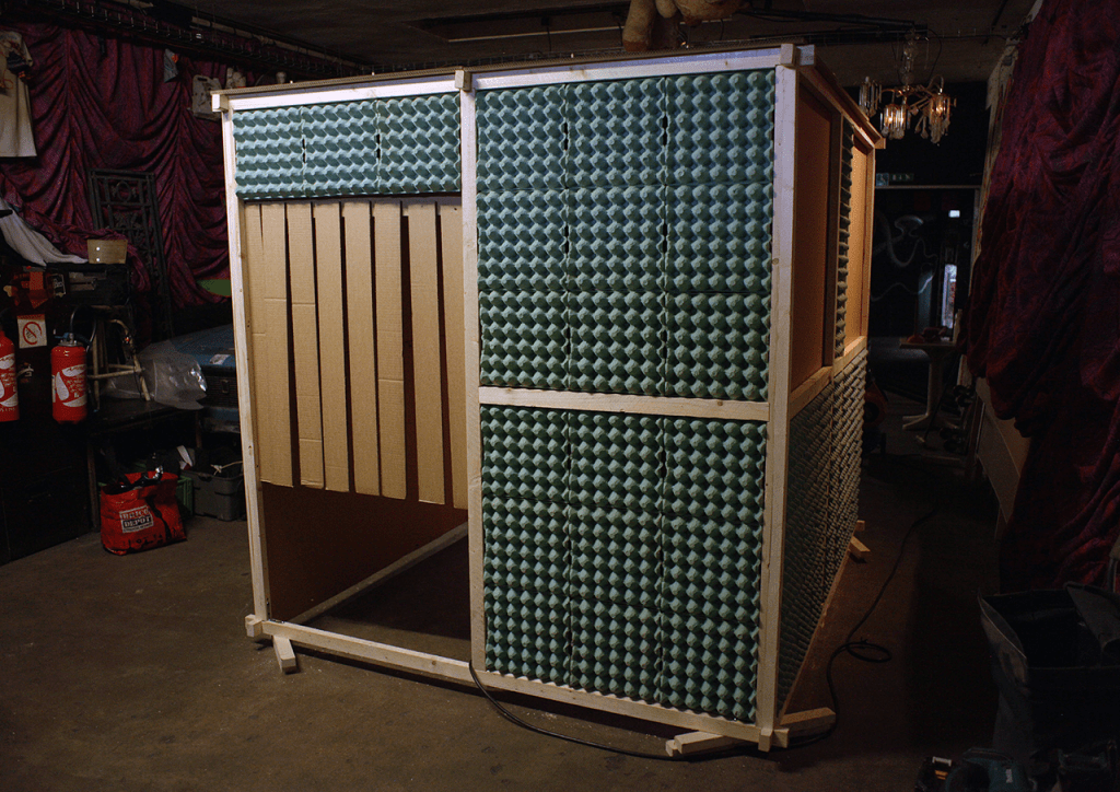 De petites boîtes, composées des mêmes matériaux de récupération que ceux utilisés pour la Cabane Métamentale (carton, bois, boîtes d’œufs) ont au préalable été construites et équipées de mini-dispositifs de diffusion sonore : on y glisse la tête, pour y écouter une parole, une pensée, aussi fragile qu’un œuf. Une dimension chorégraphique découle alors de ce dispositif de mise en écoute, qui questionne la notion d’identité et d’anonymat en réactivant le désir d’ouverture pour l’autre.