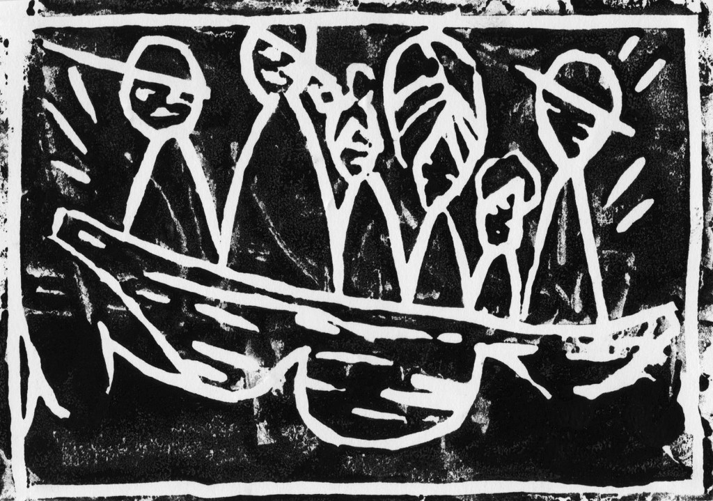 Voici quelques dessins. En plusieurs mails. Une photo du cheval de Zarzis. Des barreurs et une barreuse, un coucher de soleil, une chorale d’enfants pro-Palestine, la teuf dans le bus avec les activistes du Maghreb – il faut imaginer la bonne musique dessus – un cargo, les grosses déferlantes qui nous ont empêchés de sortir, une épave, les chantiers de dingue de bateaux, des tentatives de pêche par temps de pétole !