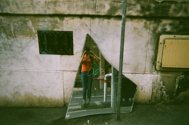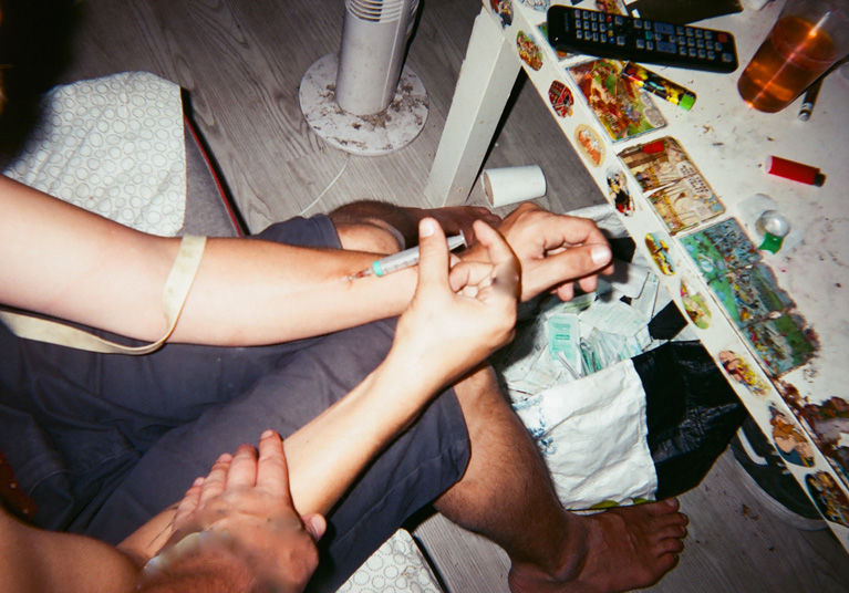 Les chiottes publiques. « Tu t’imagines, t’es là, t’as une boite comme ça, une petite boite comme ça et t’as un mec qui se shoote et t’as tout le monde qui passe à côté. C’est un petit truc en plastique qui fait deux centimètres d’épaisseur. Tu t’imagines pas ce qui se passe dedans. Y a plein de personnes qui marchent à côté. Et c’est d’une crasse, c’est pas possible. Ça me fait penser aux mondes parallèles. » « Hors cadre » car le projet photo, pour un intervenant, permet de saisir ce qui se passe au-delà de la structure. La photo représente des toilettes de chantier, comme un espace hors du temps qui une fois la porte fermée permet de s’abstraire complètement du monde extérieur : comme un lieu hors du lieu.