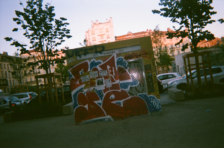 « – Les seules toilettes publiques de Marseille. – Qui sont fermées ! – Elles ont vocation à être ouvertes un jour. – Moi j’étais voué à être marin-pompier un jour, mais en attendant je fais rien. Ça reste une vocation. – D’un coup, ça fait un lieu de shoot. Mais c’est fermé ! On peut se mettre sur le toit : tu peux pas le faire dedans, tu le fais au-dessus. Ça représente un peu tout : là c’est dans le thème.