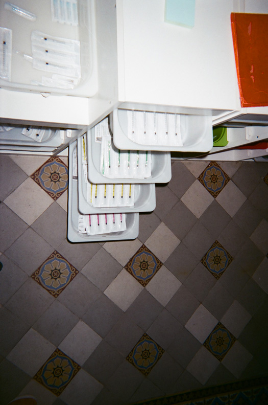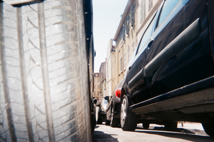 C’est l’endroit où on se shoote, entre deux voitures. Y a un sens interdit : on a pas trop le droit d’y aller ! benh voilà c’est l’endroit où on se shoote… Ça m’énerve ! enfin, ça m’énerve c’est même un euphémisme, ce paradoxe, c’est-à-dire qu’à 150, 200 mètres de là, on donne du matériel propre pour que les gens injectent proprement, avec des conseils adaptés, etc. etc. et les gens se retrouvent à shooter dans des lieux complètement insalubres, dans des conditions d’hygiène qui sont dégueulasses : et c’est un putain de paradoxe qu’on gère depuis des années… Rien de nouveau mais…